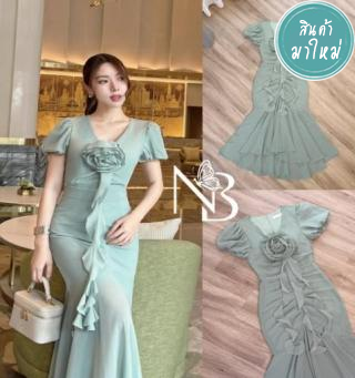 เดรสทรงเมอร์เมดหางปลายาว แขนตุ๊กตาพองกำลังดี สไตล์เกาหลี ช่วยให้ช่วงแขนเรียว ช่วงตัวบนเป็นทรงเข้ารูป
