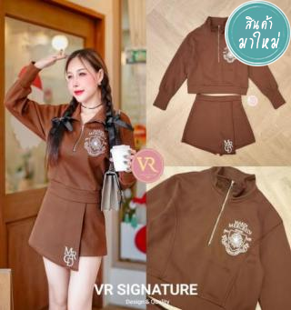 Set2ชิ้นสีน้ำตาลทั้งชุด เสื้อคอปกใหญ่แขนกุด