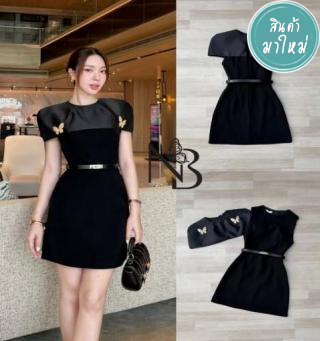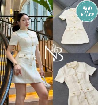 เดรสสั้นทรงสุภาพ สไตล์ผู้ดีไฮโซ ดีไซน์ คอกลมปิดกำลังดี ให้ลุคสุภาพ ดูแพง