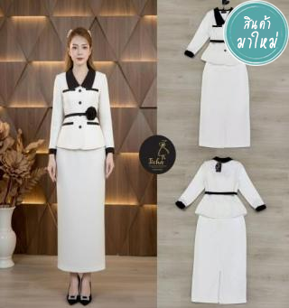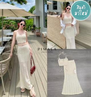 Set เสื้อคล้องคอกับกระโปรงยาวตัวสวย ตัวเสื้อเนื้อผ้าทวิตทอลายเก๋