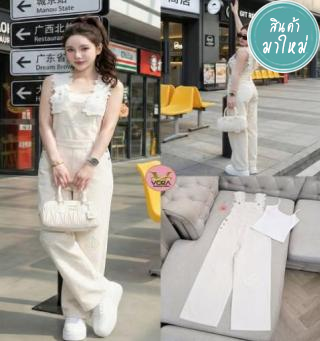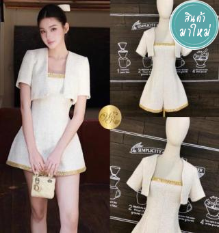 เซ็ตเสื้อคลุมแขนสั้นกับจั้มสูทสายเดี่ยว ตัวจั้มเย็บขอบด้วยลูกปัดและปักเลื่อม
