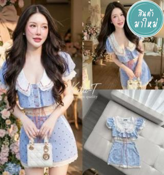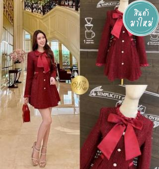 เดรสสั้นตัวเก๋ น่ารักสุดๆลุคสาวหวาน ตัวเดียวเดรสเลือกใช้ผ้าทวิตเนื้อสวย