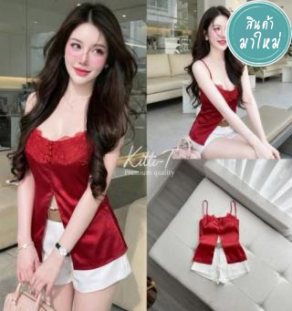 Set (3)ชิ้น เสื้อสายเดี่ยว ตัวเสื้อทำจากผ้าที่มีความเงาวาวคล้ายผ้าซาติน