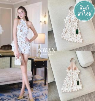เดรสสั้นดีไซน์สุดโดดเด่นด้วยลายดอกไม้สามมิติทั้งตัว