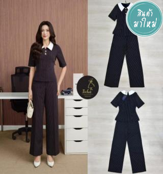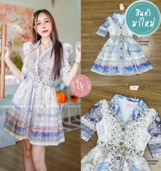 Set Mini dress + pant มินิเดรส+กางเกงขาสั้น ตัวเดรสคอปก แขนสั้น