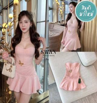 เดรสสายเดี่ยว ติดโบว์ด้านหลัง โบว์ใหญ่อลังการ ช่วงกระโปรงทรงบาน