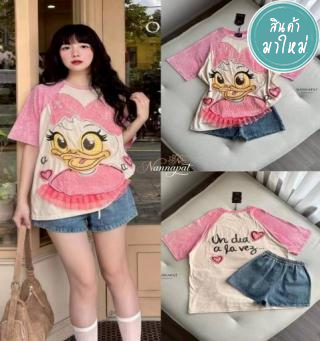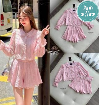 เซ็ต 2 ชิ้นโทนพาสเทลหวานละมุน ดีไซน์เสื้อคอคล้องคอกระดุมมุกคู่ด้านหลัง