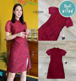 กี่เพ้าทรงมินิเดรส เนื้อผ้ามีเท็กเจอร์ แขนผ้าแก้ว ตรุษจีนปีนี้