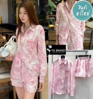 Set2ชิ้น เสื้อเชิ้ตซีทรูแขนยาวคอปก มาพร้อมกางเกงขาสั้นเข้าชุด