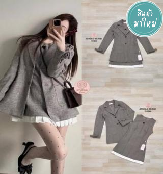เสื้อ+กระโปรง+เข็มกลัด เสื้อแขนยาวดีไซน์ด้านหน้าแต่งกระดุมเรียงสามารถแกะใช้งานได้จริง