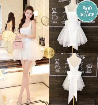 เดรสสายเดี่ยว ติดโบว์ด้านหลัง โบว์ใหญ่อลังการ ช่วงกระโปรงทรงบาน