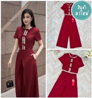 Set เสื้อแขนสั้นกับกางเกงขาบานยาว งานเนื้อผ้าอย่างดี