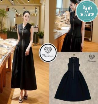 เดรสสีดำแขนกุดเทคเจอร์ผ้าทอสวยมาก เป็นทรงซิปหน้า