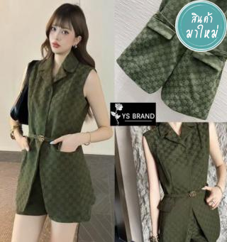 :เสื้อกั๊กสูท ทรงคอปก ผ้าทอลายGucci ทั้งตัว
