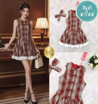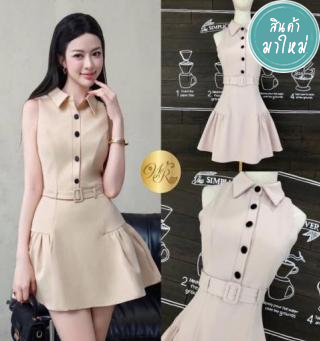 Dress เดรสแขนกุด คอปก อกติดกระดุม ซิปหลัง มีเข็มขัดให้ 1เส้น