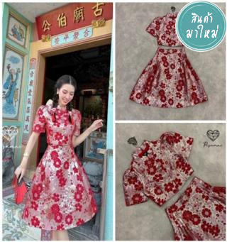 เซ็ตเสื้อแขนยาวสีแดงช่วงแขยแต่วดีเท็ลดอกกุหลาบ