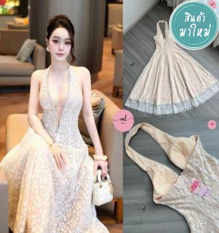 Dress ยาวตัวสวยทรงดี ตัวเดรสเลือกใช้ผ้าลูกไม้เนื้อสวย