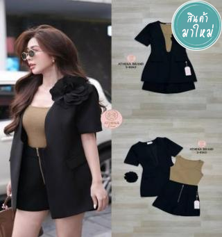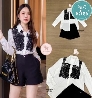 เซท 3 ชิ้น เสื้อคอปกป้ายหน้าเว้าไหล่ทั้งสองข้าง