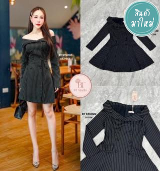 เดรสสั้นดีไซส์ปาดไหล่ปิดต้นแขนทั้งสองข้างแขนยาวแต่งปกช่วงปาดไหล่ ก