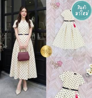 แม็กซี่เดรสตัวยาว แขนสั้น ช่วงคอเก๋ มีพร้อมกับเข็มขัดเส้นเล็กสวย