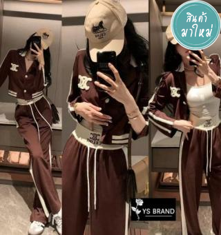 Set 2 ชิ้น เสื้อแขนยาวคอปีน ซิปคอเก๋มาก ชายแต่งเชือกรูด +กางเกงทรงกระบอก