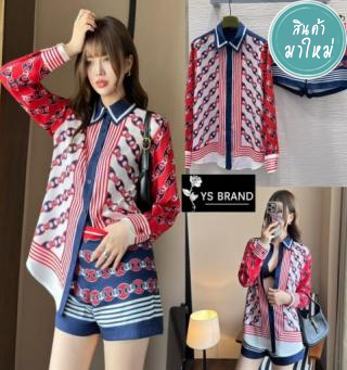 Set2ชิ้น เสื้อเชิ้ตแขนยาว แต่งคอปก ผ้าSilk Satinเนื้อนิ่มลื่นอย่างดี