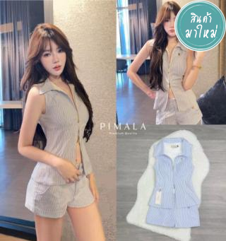 เซ็ต 2 ชิ้นโทนชมพูหวานละมุน เสื้อคล้องคอทรงแขนกุด ผ้าทิ้งตัวสวย