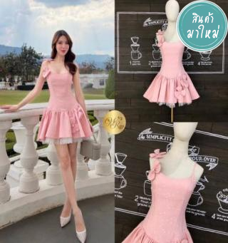 เดรสสั้นตัวเก๋ น่ารักสุดๆลุคสาวหวาน ตัวเดียวเดรสเลือกใช้ผ้าทวิตเนื้อสวย