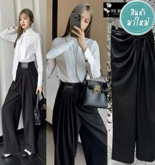 กางเกงผ้าสูทขายาวเอวสูง ผ้าเนื้ออย่างดี