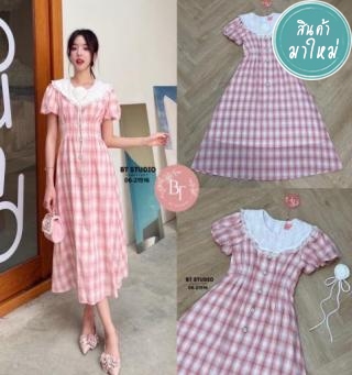 ชุดเซ็ท 2 ชิ้น เดรสยาวลายสก็อตแขนตุ๊กตา