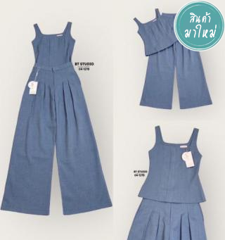 เซท 2 ชิ้น เสื้อเบเซอร์คอปกแขนยาว เว้าเอวทั้งสองข้าง