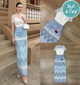 สุด Hot เซ็ทชุดไทย 3 ชิ้น ตัวเสื้อลูกไม้ซีทรูด้านบน พร้อมซับใน