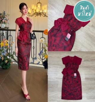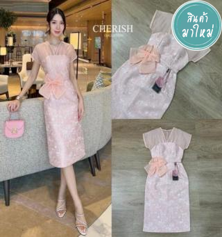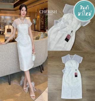 โซจึ้ง สุดๆ ด้วยชุดเดรสผ้าทอลายลูกไม้ ด้านบนช่วงอกเป็นผ้าชีฟองเนื้อทรายตกแต่ง