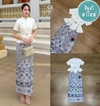 งานเซ็ท ชุดไทย 4 ชิ้น ตัวเสื้อคอกลมแขนสั้นชายระบาย