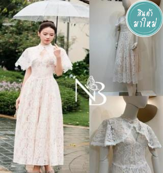 ชุดเซ็ท เสื้อคลุม+เดรสลูกไม้ยาว ดีไซน์หรู ตัวเดรสยาวทรง A-Line