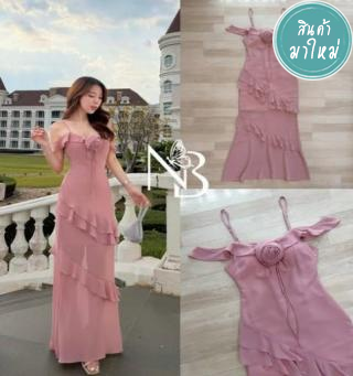 เดรสผ้าชีฟอง สายเดี่ยวแต่งระบาย สายปรับระดับได้ ดีไซน์ช่วงบนเข้ารูป
