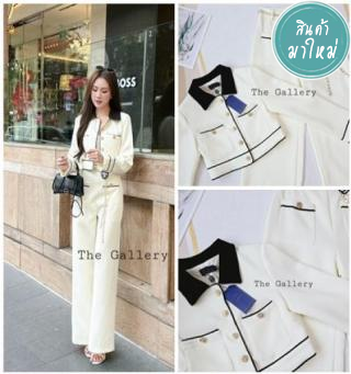 ชุดเซ็ต3ชิ้น เสื้อครอปและกางเกงขายาวสุดชิคมาพร้อมเข็มกลัดดอกไม้