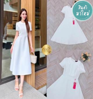 เดรสตัวยาว แขนสั้น คอบัว ซิปหลัง เนื้อผ้าอย่างดี มีน้ำหนัก