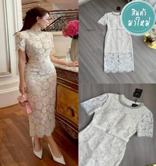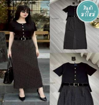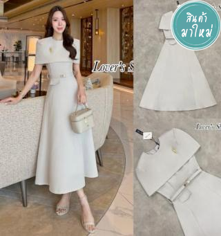 เดรสคลุมไหล่ ลุคสวยหรู ดูดี (ได้3ชิ้นนะคะ เดรส เข็มขัดหนัง เข็มกลัดสีทอง)