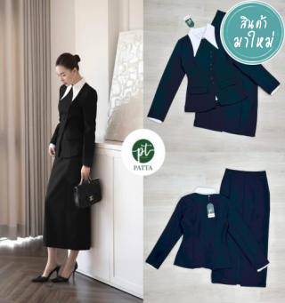 เซต3ชิ้น สีดำ เสื้อคลุมแขนยาวตัวสั้นมีกระดุมหน้า