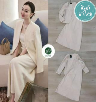 เซท 2 ชิ้น เดรสยาวคอตัดสีเหลี่ยมแต่งคอเก็บทรงใส่แล้วดูคอเรียวสวยคะ
