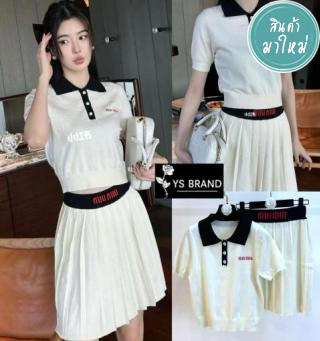 Setสุดคุ้ม ชุดSetไหมพรมแขนสั้น คอปก มาพร้อมกระโปรงเข้าชุด