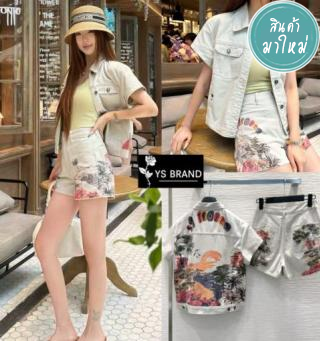 Set2ชิ้น เสื้อเชิ้ตแขนยาวคอปก มาพร้อมกางเกงขาสั้นเข้าชุด