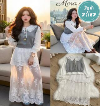 ชุดเดรสลูกไม้ ผ้างานเกาหลี มาพร้อมเข็มขัด