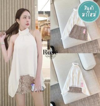 Set เสื้อคอสูงสีขาวทรงไหล่เปลือย ดีไซน์พลิ้วบางเบาให้ลุคหวานปนเซ็กซี่