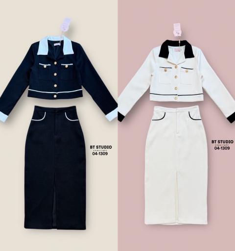 DETAIL : เซท 2 ชิ้น เสื้อเบเซอร์แขนยาวดีไซส์ตัดแต่งสีทูโทนสองสีสลับกันกระดุมหน้าสีทองแต่งกระเป๋าใช้งานได้จริง มาพร้อมเดินกุ้นแต่งเป็นเส้น แมทซ์กับกระโปรงยาวผ่าหน้า แต่งกระเป๋าเดินกุ้นแมทซ์กันกับชุดงานสวยมากค่ะ เนื้อผ้าดีมีซับในคะ