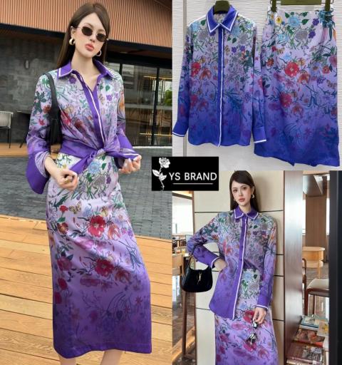 Brand: Gucci Detail :Set2ชิ้น เสื้อเชิ้ตแขนยาว คอปก ผ้า Silk Satin เนื้อนิ่มลื่นอย่างดี พิมพ์ลวดลาย ดอกไม้ Gucci ทั้งตัว เย็บกระดุมด้านหน้า มาพร้อมกระโปรงเข้าชุด เย็บซิบด้านหลัง มีกระเป๋า2ข้าง สวยโดดเด่นมากๆ คุ้มสุดๆ ซื้อ1 ได้ถึง2ชิ้น แยกใส่แยกแมทช์ได้ตามต้องการ มาพร้อมป้ายคอ Gucci Tagครบสวยมาก งานคุณภาพ ห้ามพลาด จัดเลยจ้า