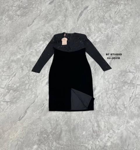 เดรสยาวแขนยาว เนื้อผ้าช่วงอกถึงปลายแขนแต่งกริตเตอร์ระยิบ ๆ