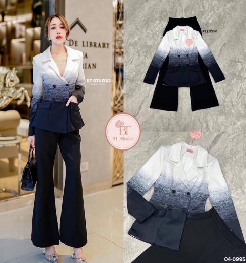 DETAIL : เซท 3 ชิ้น เสื้อเบเซอร์แขนยาวคอปกแต่งไล่สีจากสีพื้นไปอีกสี แต่งกระดุม 4 เม็ด แมทซ์กับกางเกงขายาวกระเป๋าใช้งานได้จริง งานสวยเนื้อผ้าดี มีซับใน ชุดนี้ luxury คร้าา