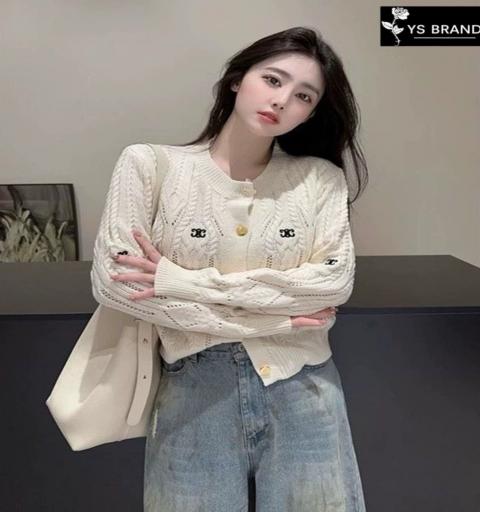 Brand: Celine Detail :เสื้อไหมพรมถักแขนยาว ผ้าไหมพรมยืดเนื้ออย่างดี ผ้าดีมากๆ นุ่ม ยืดได้เยอะ ผ้าดีทอละเอียด เย็บกระดุมCeline สีทองด้านหน้า เปัก Celine ช่วงอก สวยโดดเด่นสุดๆ มาพร้อมป้ายคอ Celine Tagครบ งานคุณภาพ ห้ามพลาด จัดเลยจ้า
